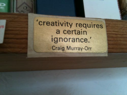Many years ago, I met the fabled poet and songwriter Ivor Cutler, who gave me a sticker, a quote from Craig Murray-Orr: